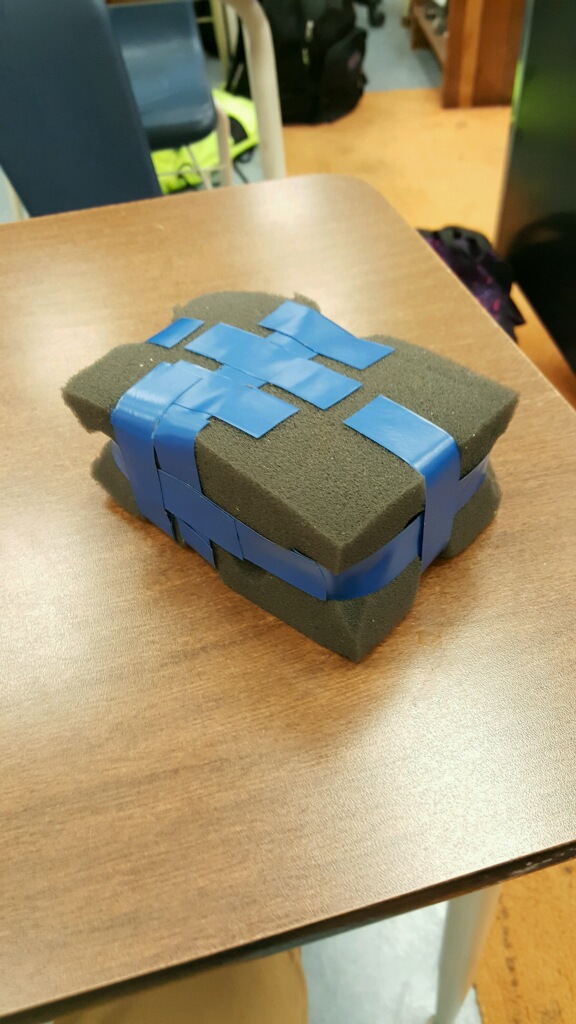 On Monday, we started to work on the design. We had to find materials, this included foam, scissors, box cutters, cardboard, and tape. Unfortunately, Dr. Neat didn't have any foam for us until Wednesday. So, we couldnt' start getting serious until Wednesday.